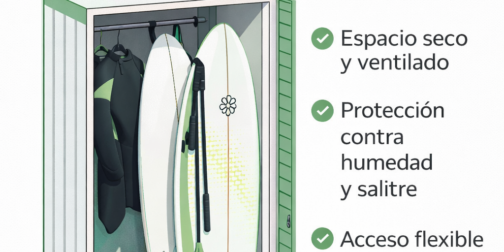 Si no tienes espacio en casa, opciones incluyen un trastero seco y ventilado, un garaje con protección contra humedad o servicios de almacenaje especializados para deportes acuáticos. Evita dejar la tabla en balcones expuestos al sol del mediodía o cerca del mar sin protección, ya que la completamente para evitar exposición prolongada al sol y al agua salada pueden dañar los materiales.